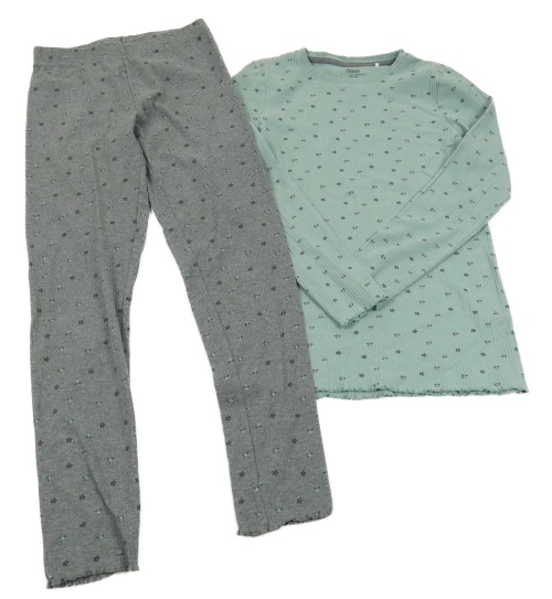 2set - Zelenošedé květované žebrované triko + šedé legíny Yigga