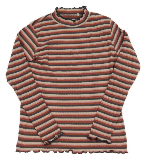 Pudrovo-růžovo-antracitové žebrované pruhované triko Yigga
