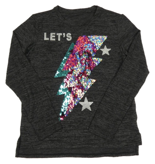 Antracitovo-černé melírované úpletové triko s bleskem z překlápěcích flitrů C&A