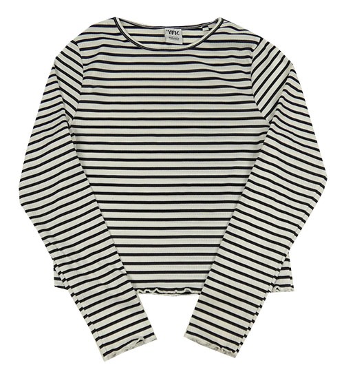 Bílo-černé pruhované žebrované crop triko Y.F.K.