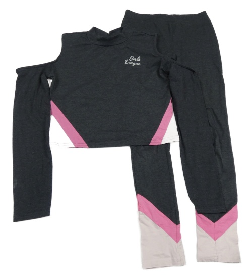 2Set - Tmavošedo-růžovo-světlerůžový crop rolák s nápisy a volnými rameny + legíny Page one young
