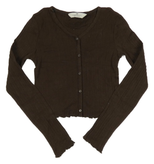 Tmavohnědé žebrované crop triko s knoflíky H&M