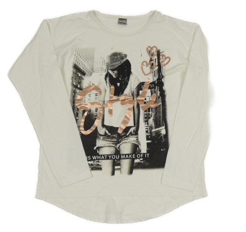 Bílé triko s dívkou a nápisem Y.F.K.