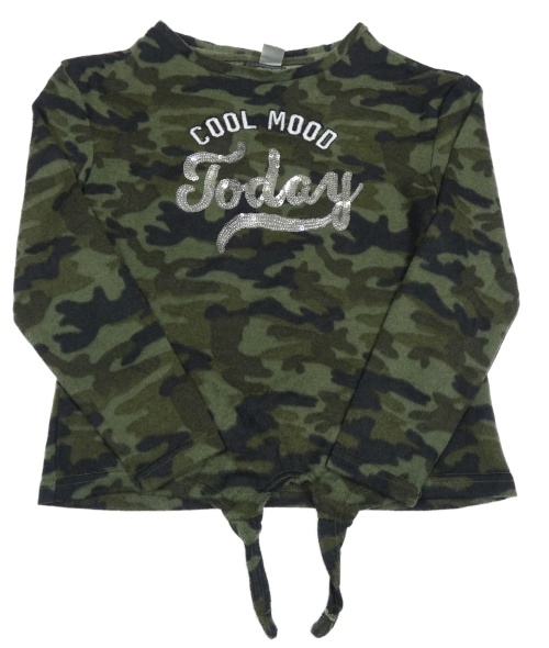 Khaki army úpletové crop triko s nápisem Y.F.K.