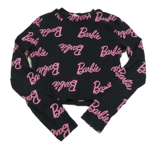 Černé žebrované crop triko s nápisy - Barbie H&M