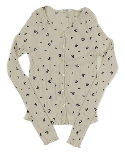 Smetanové žebrované propínací crop triko s kytičkami H&M