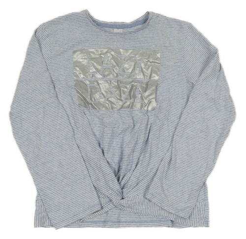 Modro-bílé pruhované triko s nápisem uzlem C&A