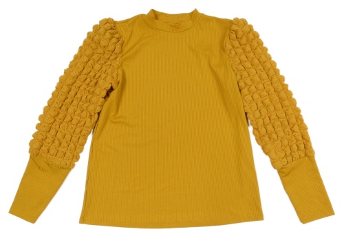 Hořčicové žebrované triko s nařasenými rukávy