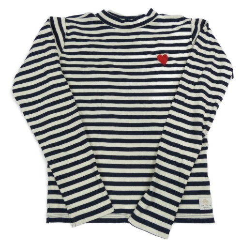 Tmavomodro-béžové pruhované žebrované crop triko s výšivkou