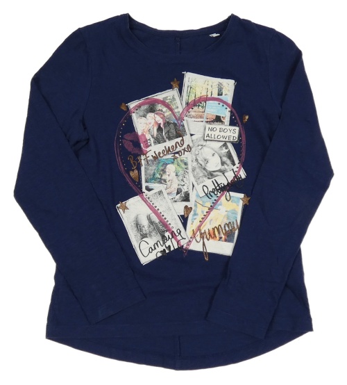 Tmavomodré triko s dívkami a srdcem s kamínky C&A