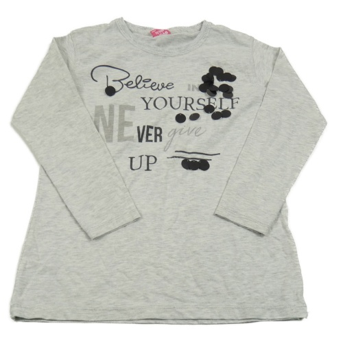 Světlešedé melírované triko s nápisem a flitry