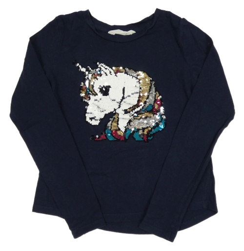 Tmavomodré triko s jednorožcem z flitrů H&M