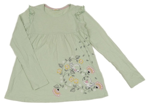 Zelenkavé triko s volánky, listy a ptáčkem Kids
