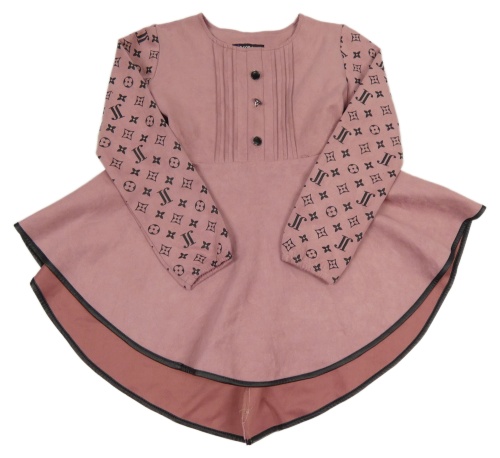 Růžová flaušová tunika s vzorovanými rukávy a gombíky