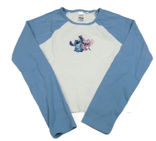 Bílo-modré žebrované crop triko se Stitchem a Angelou C&A