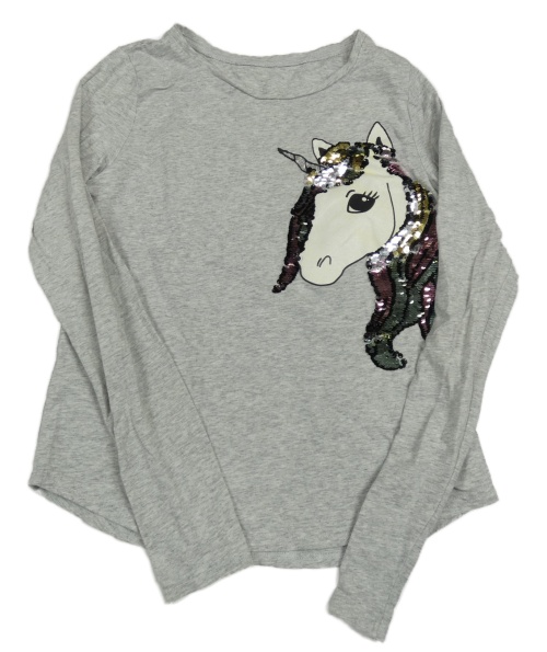 Šedé melírované triko s jednorožcem z flitrů