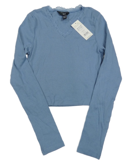 Nové - Modré žebrované crop triko s krajkou New Look