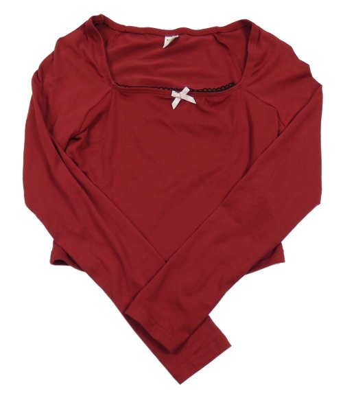 Vínové crop triko s mašlí SHEIN