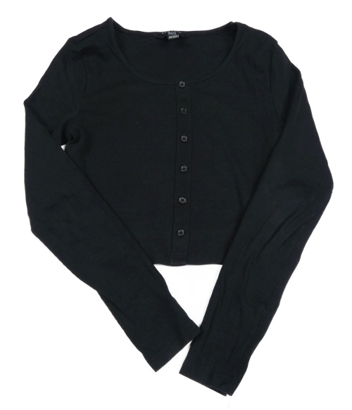 Černé žebrované crop triko s knoflíky New Look