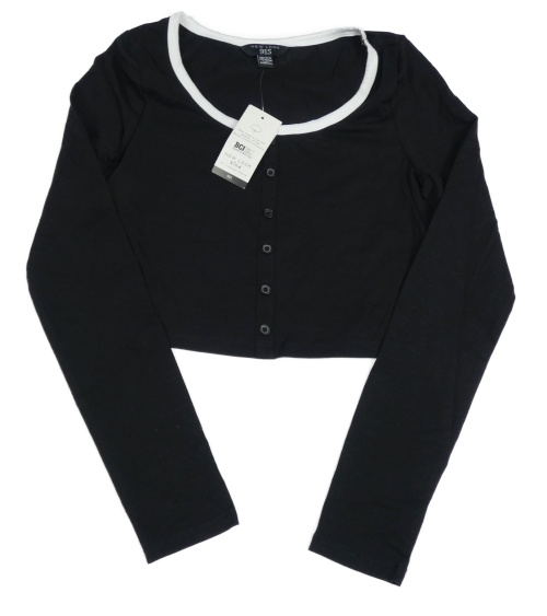 Nové - Černo-bílé crop triko s knoflíčky New Look