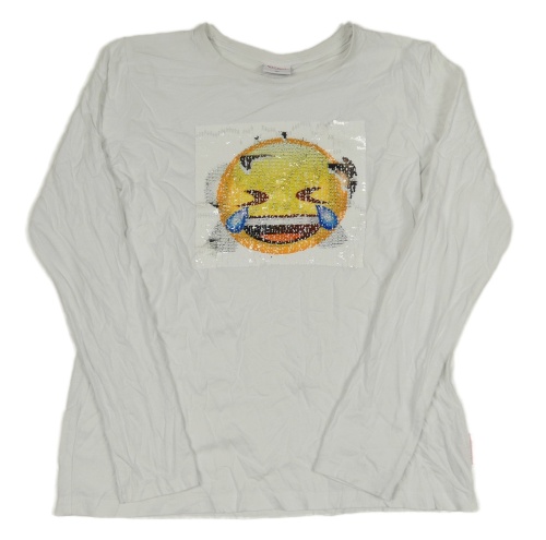 Bílé triko s obrázkem z překlápěcích flitrů Emoji