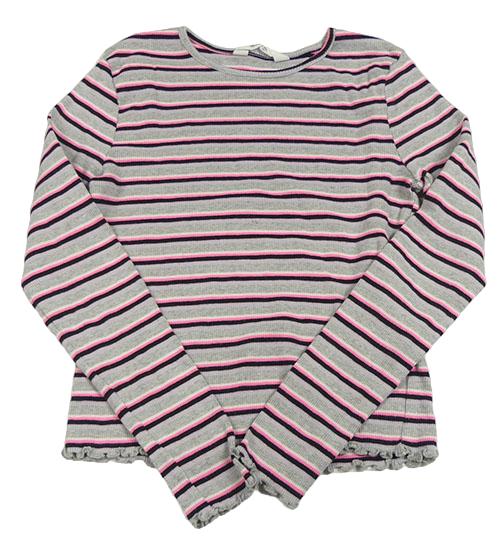 Šedo-černo růžovo-bílé pruhované melírovaé žebrované crop triko H&M