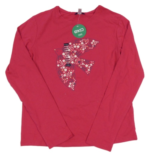 Nové - Malinové triko s ptáčkem s květy Okaidi