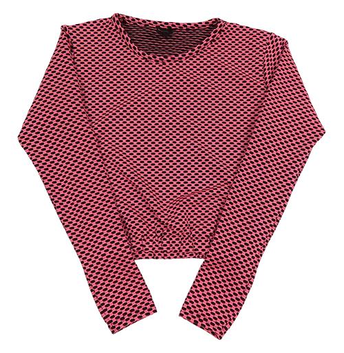 Neonově růžovo-černé vzorované crop triko