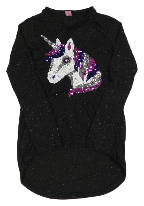 Černé melírované dlouhé triko s jednorožcem z flitrů Y.F.K.