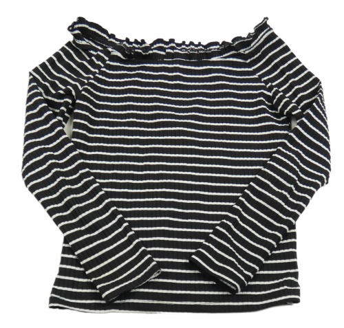 Černo-bílé pruhované žebrované crop triko s lodičkovým výstřihem Candy Couture