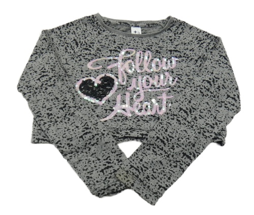 Šedo-černé vzorované crop triko s nápisem z flitrů C&A