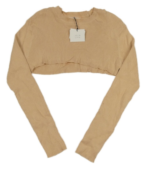 Nové - Béžové úpletové žebrované crop triko Shein