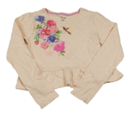 Světlerůžové crop triko s 3D květy a ptáčkem