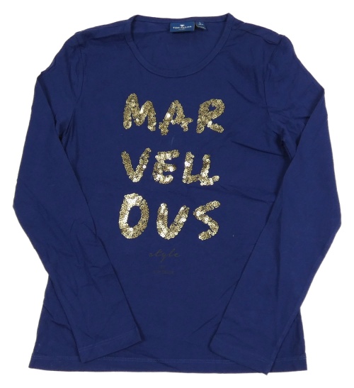 Tmavomodré triko s nápisem z flitrů Tom Tailor
