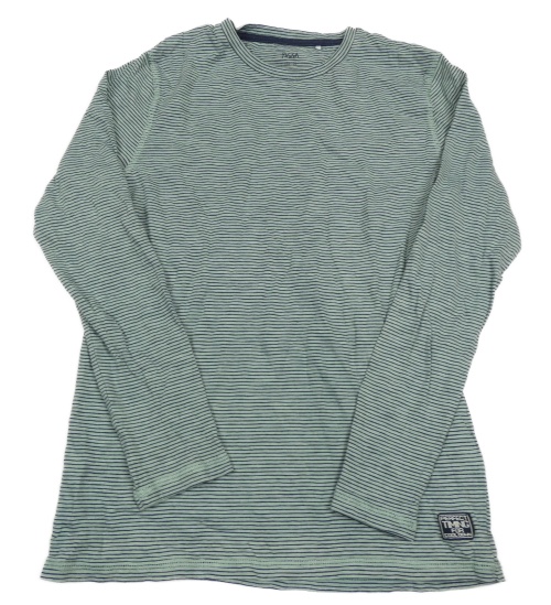 Zelenošedo-tmavomodré pruhované triko s nášivkou YIGGA