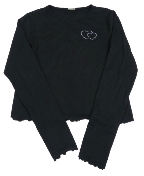 Černé žebrované crop triko se srdíčky z kamínků Y.F.K.