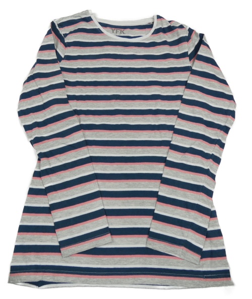 Šedo-tmavomodro-růžové pruhované triko Y.F.K.