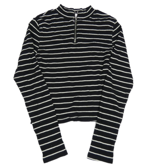 Černo-bílé pruhované žebrované crop triko se zipem New Look