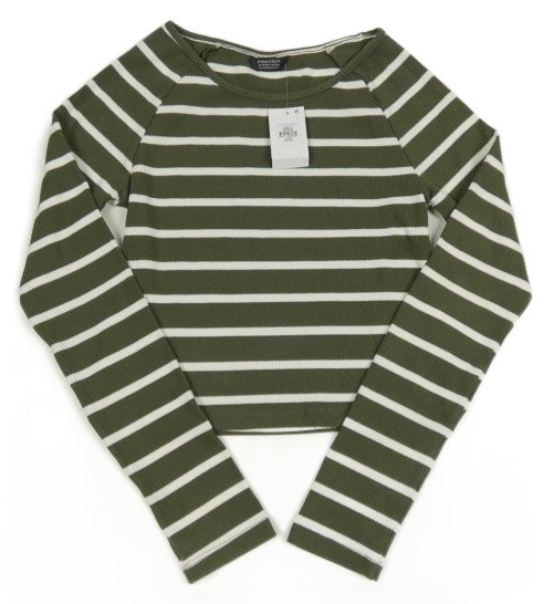 Nové - Khaki-bílé pruhované žebrované crop triko Primark