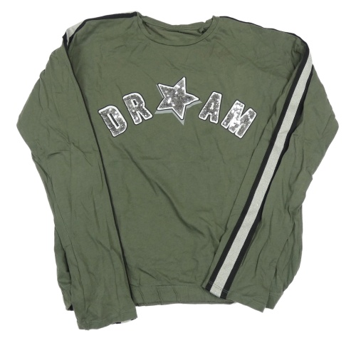 Khaki crop triko s pruhy a nápisem z flitrů C&A