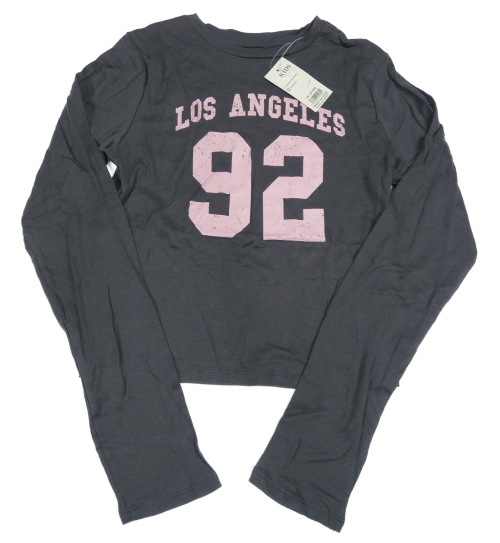 Nové - Šedé crop triko s nápisem Peacocks