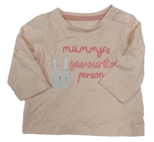 Světlerůžové triko s puntíky s králíčkem