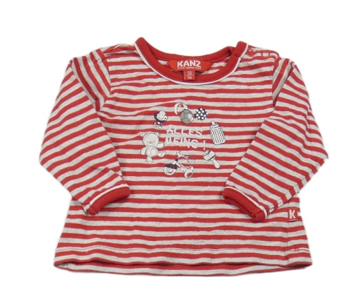 Červeno-světlešedé pruhované triko s obrázky a nápisy KANZ