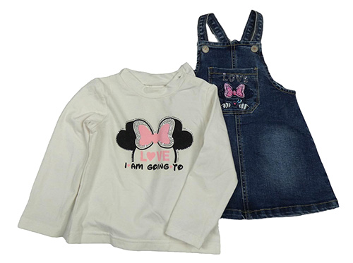 Nové - 2 set - bílé triko s Minnie + tmavomodré riflové laclové šaty