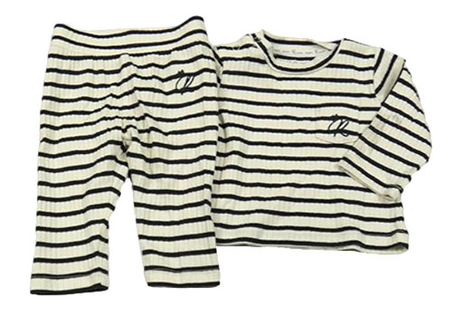 • 2set - Béžovo-černé pruhované žebrované triko s kapsou + legíny River Island