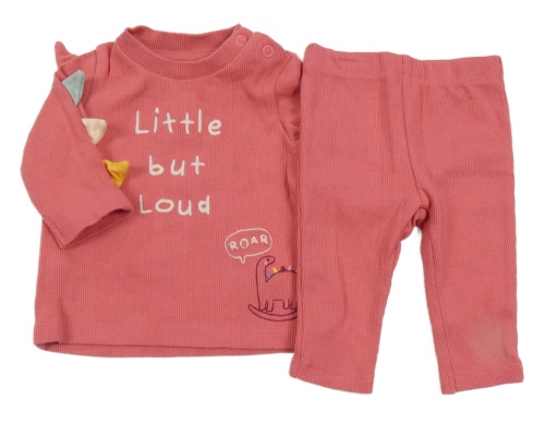 2 set - růžové žebrované triko s nápisem a dinem + legíny F&F