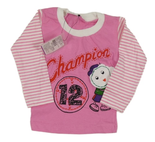 Nové - Růžové triko s nápisem a pruhovanými rukávy