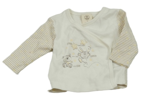 • Bílo-hnědé zavinovací zavazovací triko s medvídkem a zajíčkem a pruhy Ergee