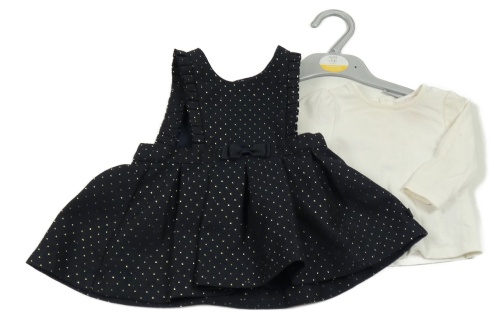 • Nové - 2Set - Tmavomodro-zlatá puntíkatá teplá laclová sukně s mašlí a volánky + bílé triko TED BAKER