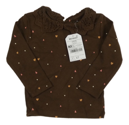 Nové - Hnědé triko se srdíčky a madeiorvým límečkem Next